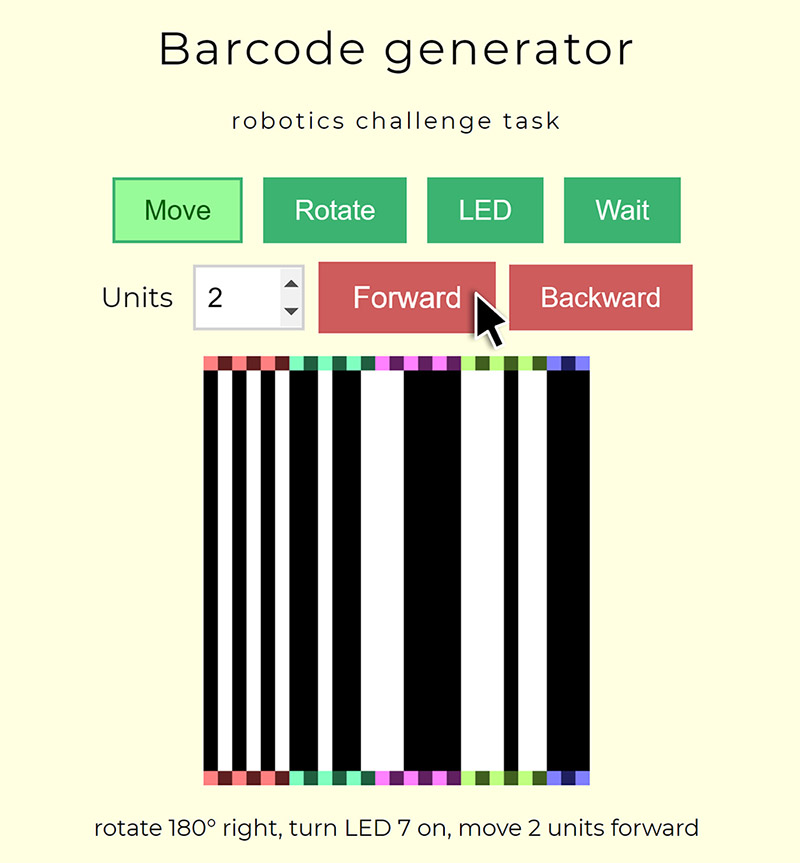 Le code-barres est ensuite reproduit sur papier (ou imprimé) et le robot se met à rouler dessus pour le lire. Voici une vidéo du résultat.